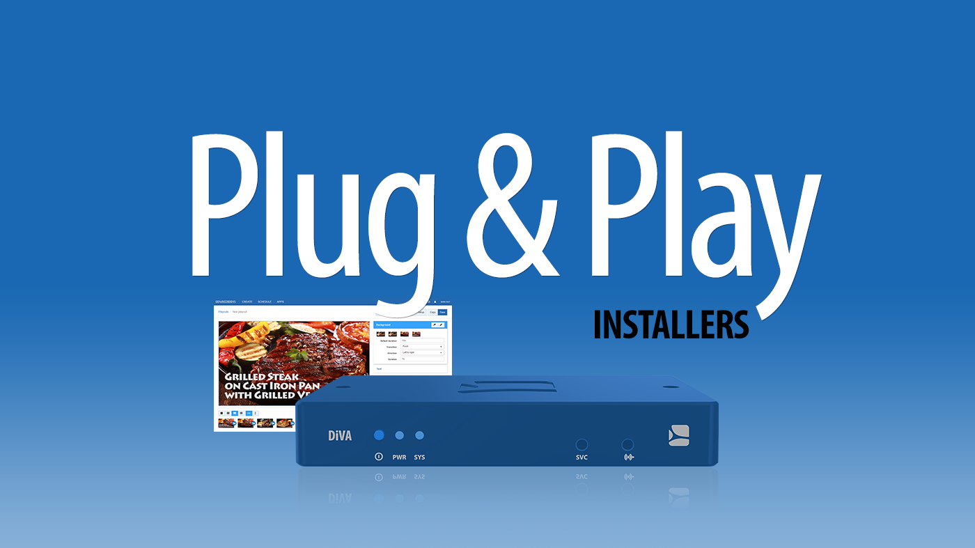 DiVA. Quando i rivenditori sono chiamati a installare un singolo schermo in modalità orizzontale o verticale, hanno bisogno di un prodotto “all-in-one”, facile da installare, affidabile, con una semplice interfaccia utente e un ricco set di applicazioni visive pronte per l’uso (previsioni del tempo, QR code, messaggi, ecc). DiVA , il nuovo Player per il digital signage di SpinetiX, offre tutte queste funzionalità a un prezzo molto competitivo. DiVA non richiede installazioni di software o abbonamenti in cloud e si configura in soli tre minuti.
